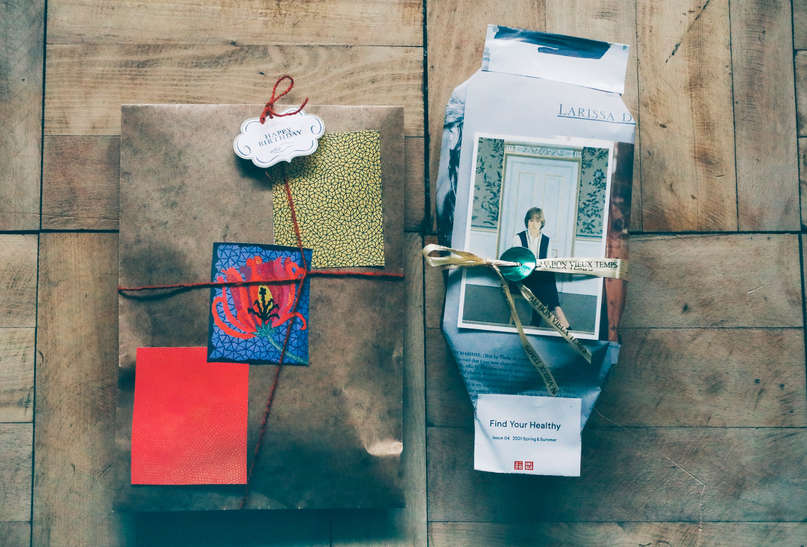 役目を終えた廃紙やお気に入りのフリーペーパーなどを再利用して、世界にひとつだけのラッピングに変身させます。
