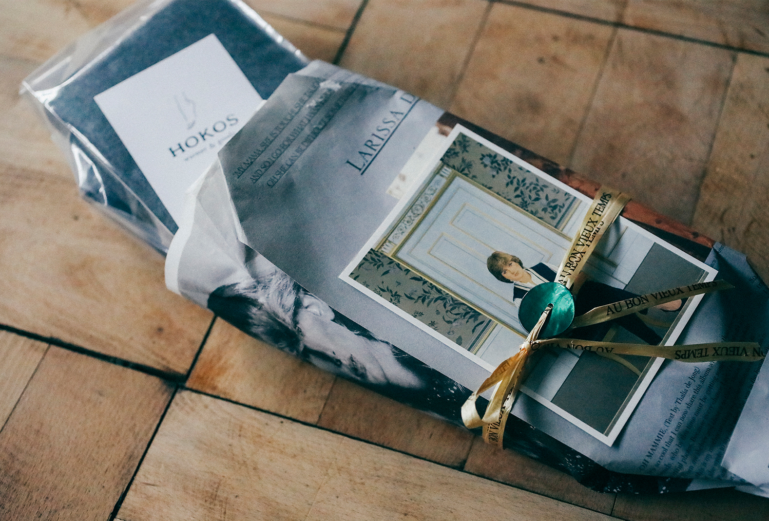 「素敵だな」と手元に残していた紙を、ラッピングの素材として使います。