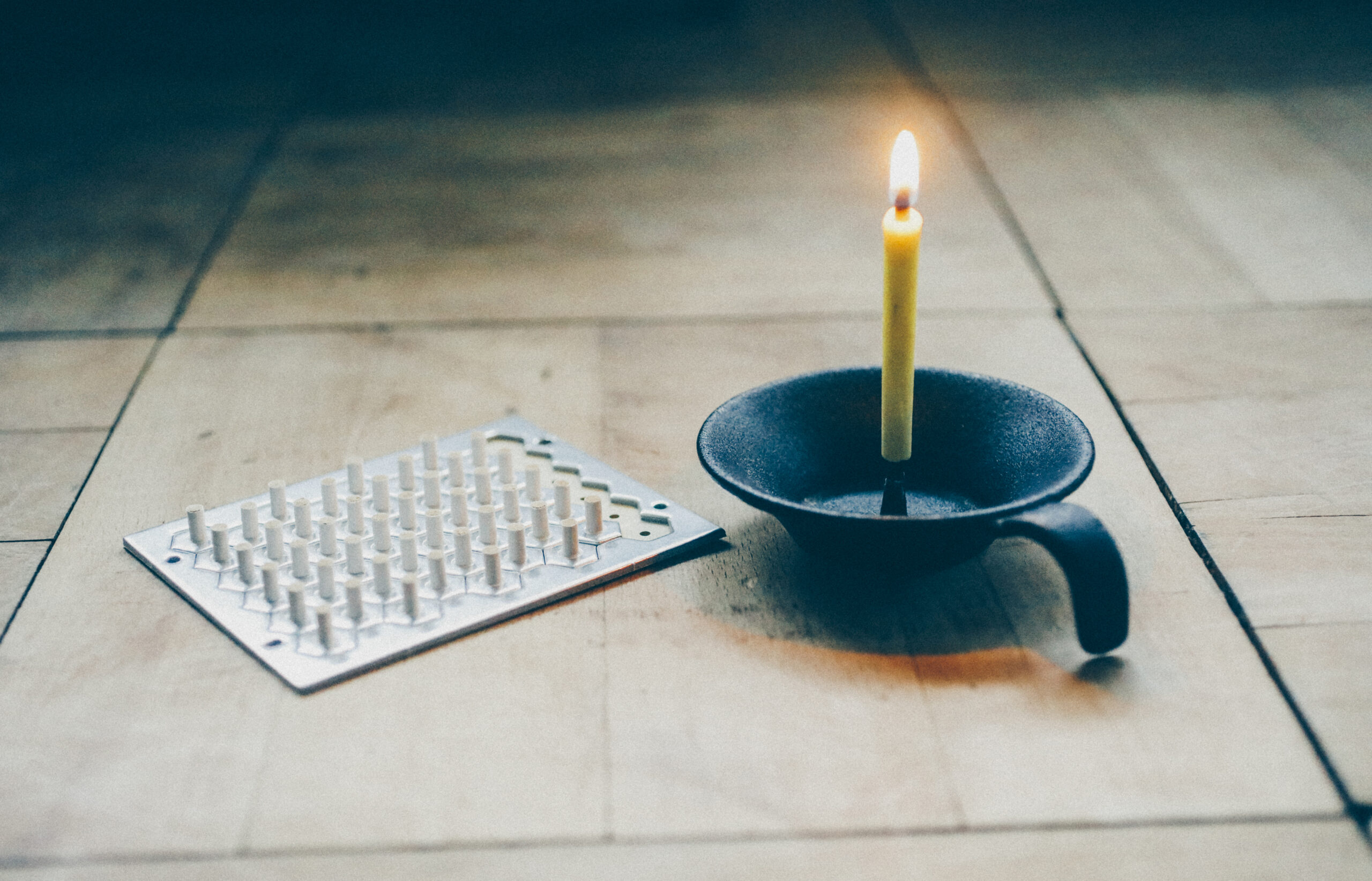 「朝、気持ちをシャンとさせるために使うことが多いです。 バラバラだった心と体がまとまる感じ」というお灸。『長生 灸』の普通タイプを肩にするのが好きだそう。高澤ろうそ くの菜の花ろうそくと鉄のろうそく立てを愛用中。 長生灸もぐさの丸正 @yamasho1895